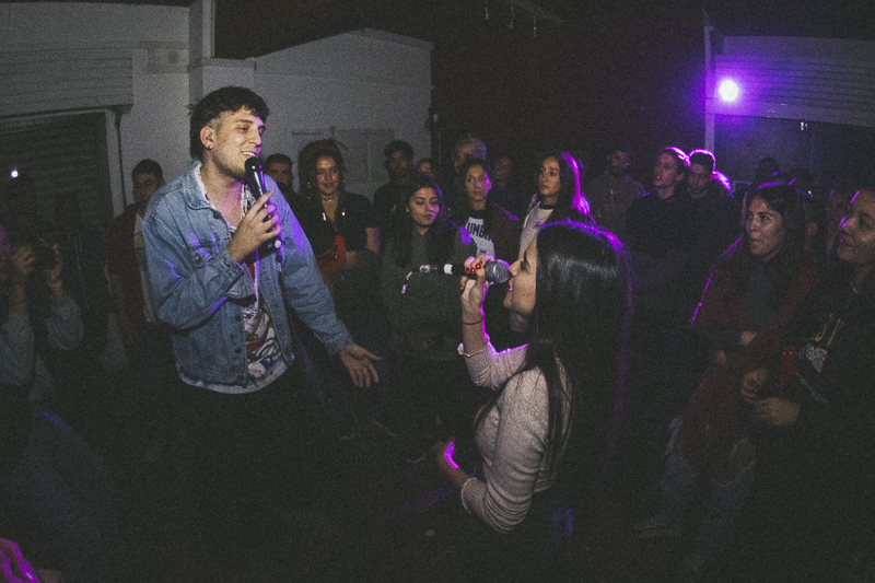 Fue cuando la noche se empezó a cerrar en mi cabeza. La calle Maipú parecía desierta, antes habían estado reconstruyéndola y pareciera que los autos se acostumbraron a evitarla. Llegué a tiempo, solo y sin cámara, el celular sin batería. Había un silencio incómodo entre los murmullos crecientes, mi silencio rodeado de pendejos, buenas pibas y pibes de la city. Algunos no tenían ni 20 años. Me pusieron un corazón en la mano como entrada y un portón de chapa se abrió.