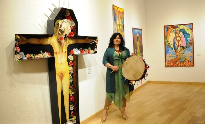 La obra El velorio de la cruz, por ejemplo, no tiene nada de atea o irreligiosa en su concepción. Es un testimonio estético de la religiosidad sincrética y mestiza de la América Latina. El cuerpo desnudo de una mujer con los brazos extendidos en cruz, colocado dentro de un ataúd con esa misma forma, entre un montón de flores de colores, con la cabeza cubierta por una calavera de vaca. Solo una interpretación obtusamente autorreferencial, literalista, mal pensada y paranoide puede ver «satanismo» o «cristofobia» en esa imaginería.